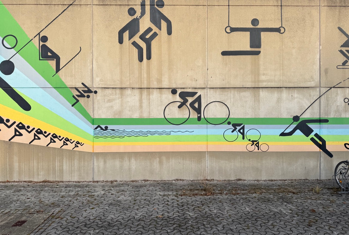 Eine weitere Station: der Olympiapark von 1972 - beeindruckende Typologien nach der Idee der Moderne, die gebaute Stadt, durch die Freiraum fließt, ikonische Piktogramme zu den Regenbogenspielen von Otl Aicher und eine funktionierende Nachnutzung des gesamten Quartiers zeigten schon früh die Möglichkeiten des nachhaltigen Planens auf.